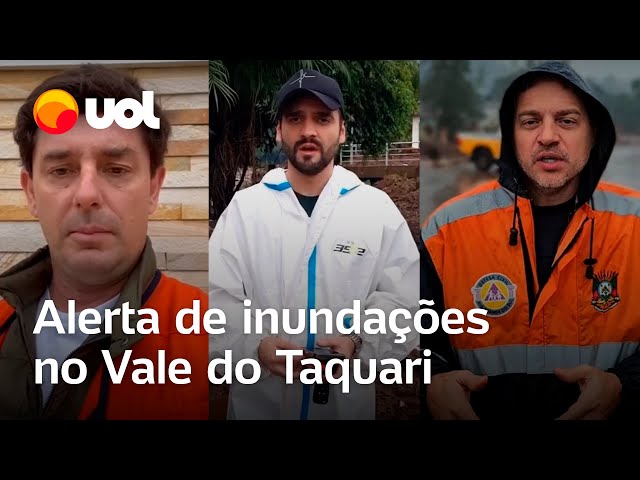 Em Estrela (RS), o rio Taquari está quase 5 metros acima do nível que causa enchente. Diante do cenário, prefeitos se revezam em rádios locais e estaduais pedindo para as pessoas deixarem suas casas e interromperem trabalhos de limpeza.