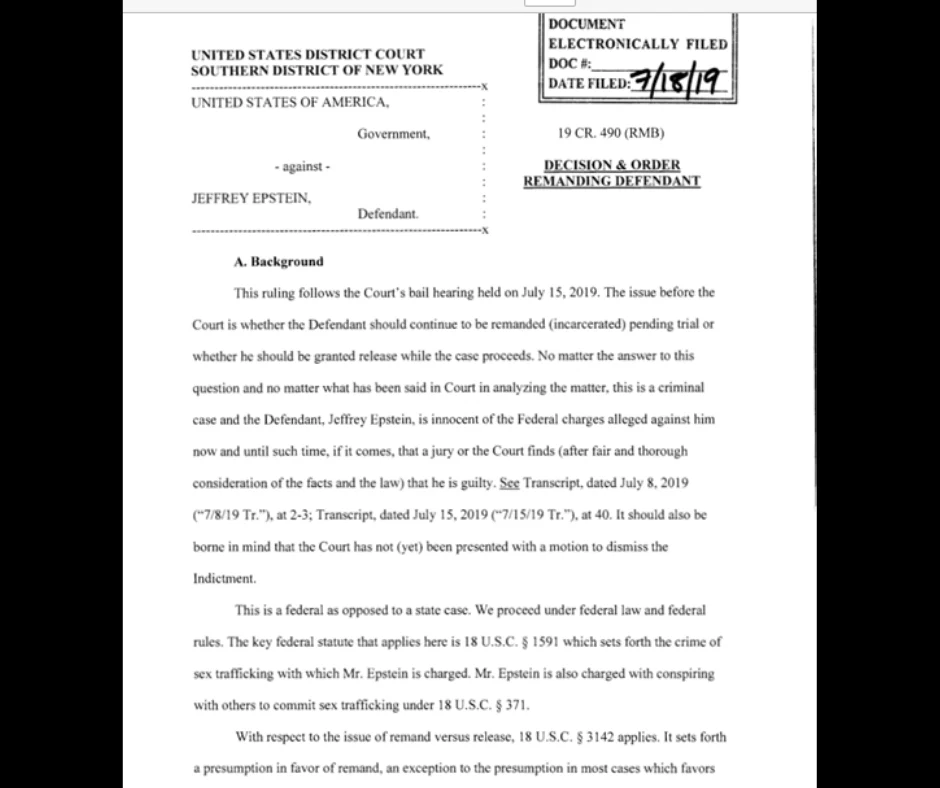 O documento, porém, usa o depoimento de David Boies, que representava as vítimas identificadas neste caso. Ele informou ao Tribunal que, enquanto um processo civil estava em andamento, “tivemos situações em que testemunhas que estavam cooperando conosco foram contatadas pelo Sr. Epstein ou seus advogados e, em seguida, pararam de cooperar conosco”.